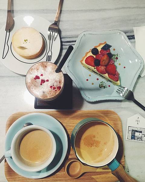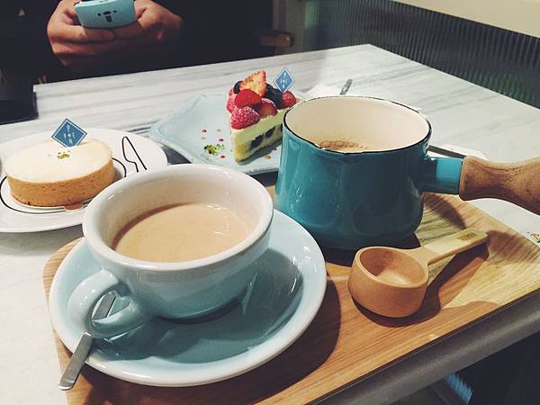 過沒多久甜點和飲料都送上來了(餐具要自取喔!)