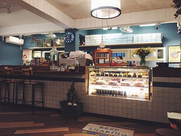 等李桑入座,我迫不及待跑去玻璃櫃前點甜點,看起來都好好吃!(照片左邊有掛十二夜的旗幟,感動